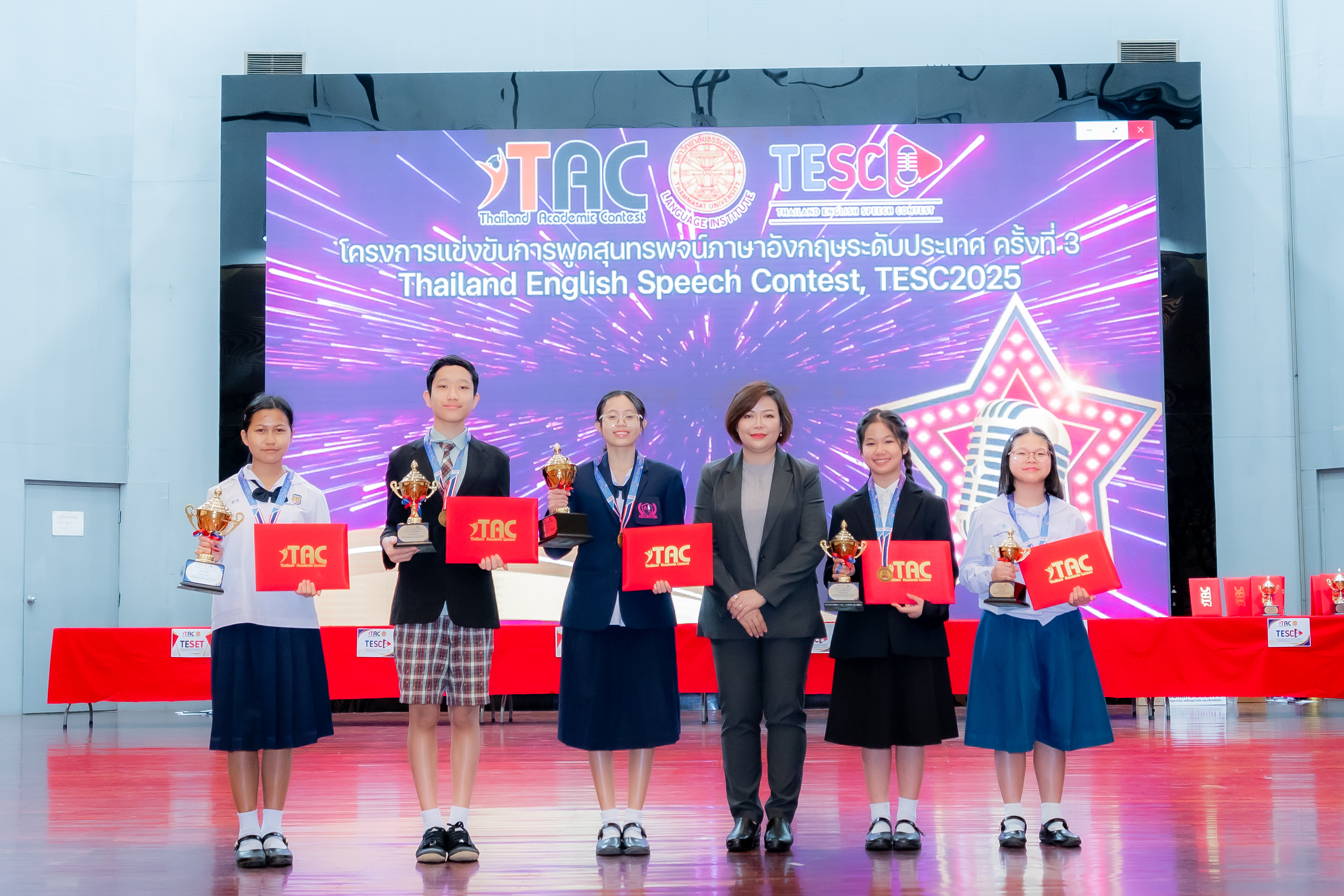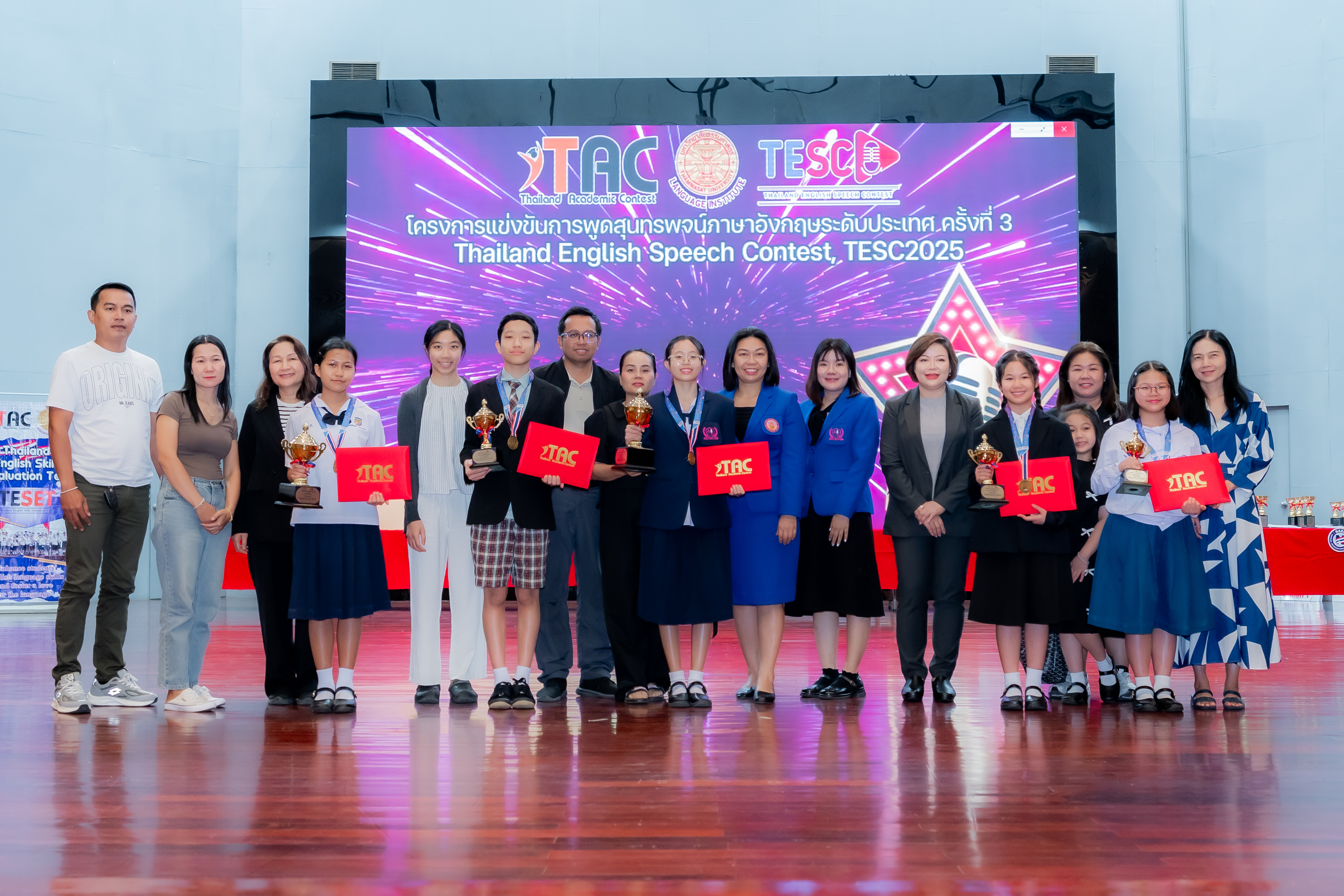 พิธีมอบรางวัลการแข่งขันการพูดสุนทรพจน์ภาษาอังกฤษระดับประเทศ Thailand English Speech Contest (TESC) รอบคัดเลือกตัวแทน จัดขึ้นเมื่อวันที่ 24 มกราคม ณ ห้องบร. 4 อาคารเรียนรวมสังคมศาสตร์ มหาวิทยาลัยธรรมศาสตร์ ศูนย์รังสิต มหาวิทยาลัยธรรมศาสตร์