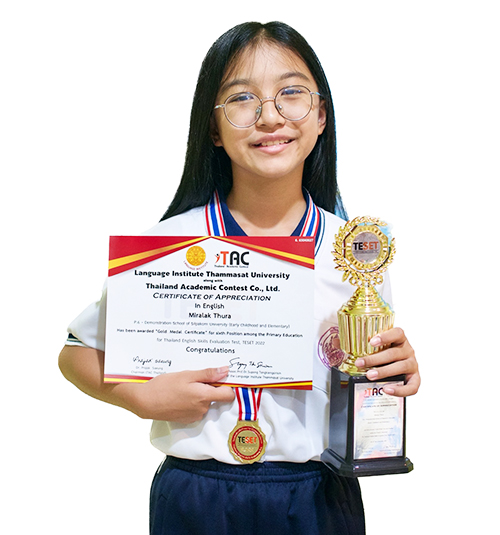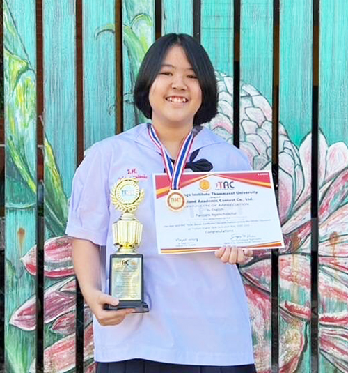 นักเรียนชั้นประถมศึกษาปีที่ 6 โรงเรียนสาธิตแห่งมหาวิทยาลัยเกษตรศาสตร์ ศูนย์วิจัยและพัฒนาการศึกษา ได้รับรางวัลชมเชย (คะแนนอันดับที่ 6) ระดับชั้นประถมศึกษาตอนปลาย