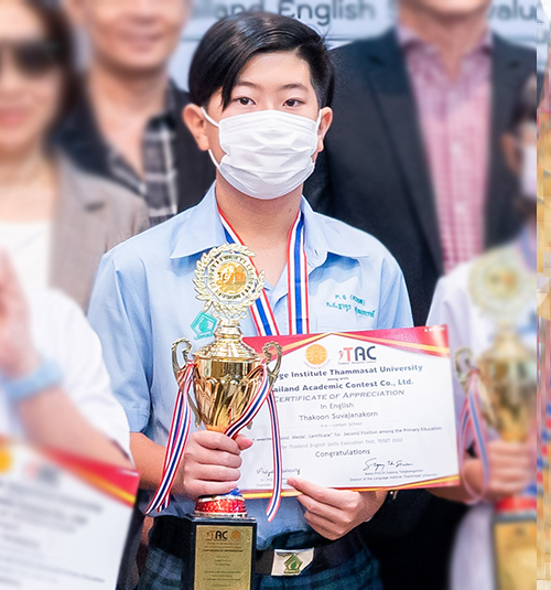 นักเรียนชั้นประถมศึกษาปีที่ 6 โรงเรียนสาธิตมหาวิทยาลัยศิลปากร (ปฐมวัยและประถมศึกษา) ได้รับรางวัลชมเชย (คะแนนอันดับที่ 6) ระดับชั้นประถมศึกษาตอนปลาย