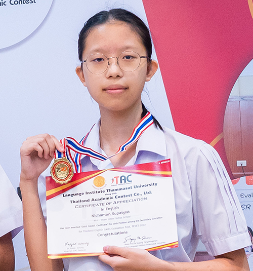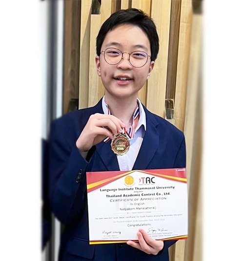 นักเรียนชั้นมัธยมศึกษาปีที่ 3 โรงเรียนเตรียมอุดมศึกษาน้อมเกล้า ได้รับรางวัลชมเชย (คะแนนอันดับที่ 4) ระดับชั้นมัธยมศึกษาตอนต้น